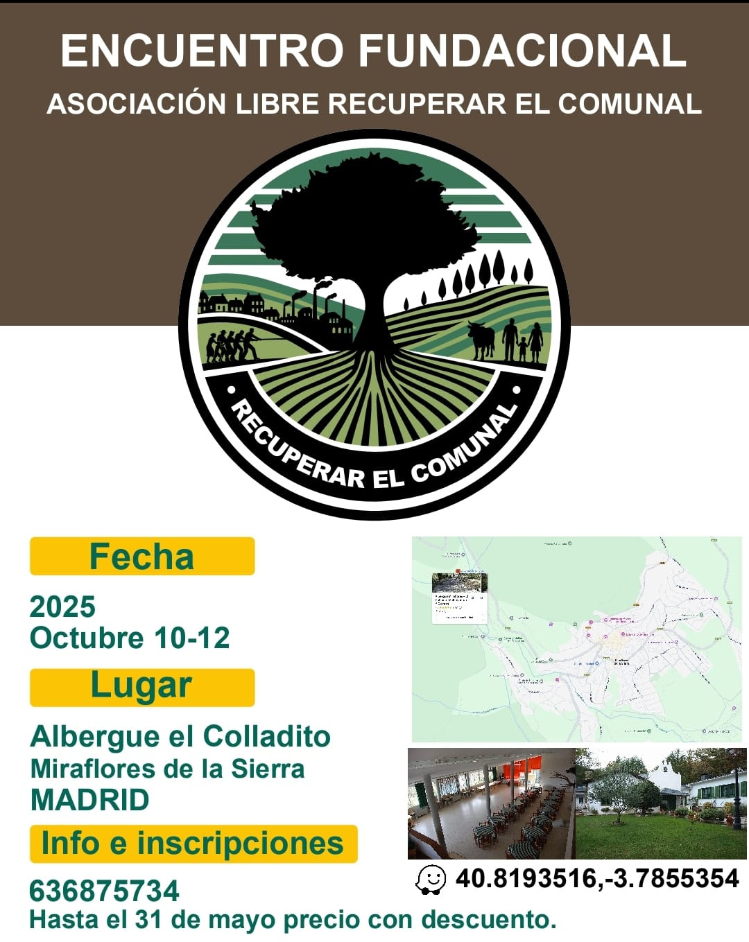 El congreso fundacional de «Recuperar el Comunal» tendrá lugar en un albergue de la sierra de Madrid los días 10-12 de octubre de 2025.